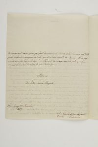 Il la remercie de toutes ses bontés pendant son séjour à Paris. « Le souvenir des jours que j’ai eu le bonheur de faire ma cour en personne à Votre Majesté ne s’effacera jamais de ma mémoire, et […] je ferai tout ce qui dépendra de moi pour vous prouver combien je vous suis attaché, et reconnoissant, et combien je souhaite de mériter la continuation de vos bonnes graces »… Il a été heureux de retrouver ses enfants grandis et bien portants. « Je prie Votre Majesté de me rappeller au souvenir de Sa Majesté l’Empereur en lui témoignant mon plus parfait dévouement »…