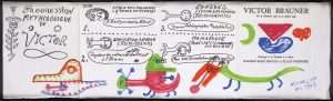 UN DES 15 EXEMPLAIRES NUMÉROTÉS TIRÉS SUR CALICOT, ENTIÈREMENT ENLUMINÉS À LA GOUACHE EN COULEURS DE LA MAIN DE VICTOR BRAUNER.