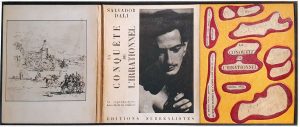 Montage comprenant la couverture, le frontispice de l'édition originale de 1935, et un découpage d'incrustations en peau mosaïquée comportant à l'intérieur de chacune d'elle le titre, et un envoi autographe de Salvador Dali: à Henri Leroy-Beaulieu, son ami Salvador Dali, 1936.