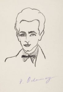 Portrait lithographié de Louis Aragon signé au crayon mauve par Robert Delaunay.