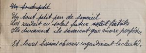 POÈME AUTOGRAPHE sur bout de papier d'écolier à l'encre avec ratures et corrections de Paul Eluard: "Un tout petit peu de sommeil