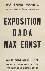 EXPOSITION DADA MAX ERNST. Paris, Au Sans Pareil, 3 mai au 3 juin 1921. Triptyque in-8, imprimé recto-verso sur papier bleu et blanc.