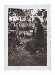 La photographie représente assises dans l'herbe côte à côte Frida Kahlo et Nathalie Trotsky. Elle est annotée au verso à l'encre verte par Jacqueline Breto