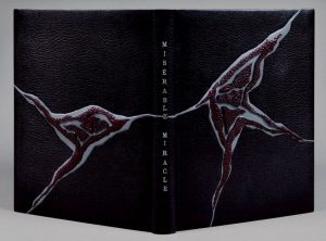 MISÉRABLE MIRACLE. La Mescaline. Avec 48 gravures hors-texte de l'auteur. Monaco, Éditions du Rocher, 1956. In-4 relié plein maroquin noir, plats mosaïqués d'une composition abstraite de box gris bleuté et agneau crispé bordeaux, dos orné du titre en long, doublures et gardes de daim bordeaux encadrées de listels de box gris, tranches dorées sur témoins, couverture et dos conservés, chemise à rabats, étui (C et J.-Miguet, 1988).