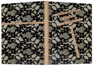 QUAND LE BRUIT TRAVAILLE. Paris, GLM, 1936. In-12, pleine peau imprimée en simili-dentelle, portant le titre sur le premier plat et la date sur le second, dos lisse muet de box havane clair, doublure et gardes de daim vert bouteille, couverture conservée, chemise titrée, étui (Antonio P. N.)