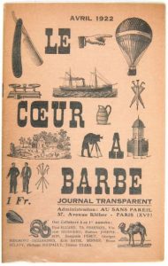REVUE. LE COEUR À BARBE journal transparent. Paris, avril 1922. Gérant: Ribemont-Dessaignes. Fascicule in-8, couverture illustrée agrafée.