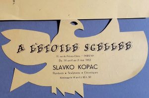 SLAVKO Kopac. CATALOGUE À L'ÉTOILE SCELLÉE. 1953.