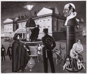 - Photographie portant au verso de la main de Clovis Trouille "Le Baiser du Confesseur" et la mention Clovis Trouille de la main d'André Breton, ainsi que le tampon du Bureau des Recherches Surréalistes.