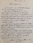 LETTRE DATÉE PARIS LE 28 JUIN 1947. UNE PAGE IN-12 À L'ENCRE: «J'ai bien reçu votre message qui m'a fait grand plaisir. Je vous ai téléphoné en vain ayant grand scrupule de déranger l'écrivain. Comme je me doute que vous devez être entouré et même importuné, je vous fais déposer chez votre concierge un souvenir de mon clergé en saturnales. Vous trouverez deux photos de l'état définitif de deux toiles que vous connaissez et qui n'étaient malheureusement pas terminées jadis. Il existe un deuxième tableau des funérailles, tout autre, mais je n'ai pas encore de photo. Cher Monsieur, croyez-moi votre admirateur de toujours et bien cordialement à vous, Clovis Trouille.»