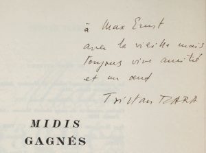 PRÉCIEUX EXEMPLAIRE DE MAX ERNST PORTANT CET ENVOI AUTOGRAPHE SIGNÉ DE TRISTAN TZARA: «à Max Ernst avec la vieille mais toujours vive amitié et un oeuf, Tristan Tzara».