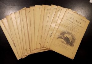 Oeuvres posthumes. I. Ma biographie, écrite par Béranger. Avec un appendice et des notes. Ornée d'un portrait en pied dessiné par Charlet, d'une photographie d'après le marbre de M. Geoffroy-Dechaume et de huit gravures d'après d'Aubigny, Sandoz et Wattier, exécutées par Durond, Massart, Lalaisse, Nargeaot et Ruhierre. - II. Dernières chansons de Béranger, de 1834 à 1851. Avec une préface de l'auteur. Illustrées de 14 dessins de A. de Lemud gravés sur acier par MM. Balin, Brunet, Colin, Darodes, Doherty, Goutières, Massart, Noret, Lalaisse, Nargeaot et Pelée