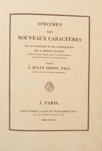 Spécimen des nouveaux caractères de la fonderie et de l'imprimerie de P. Didot l'aîné, (...) dédié à Jules Didot, fils, (...)