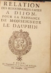 Relation des réjouissances faites à Dijon, pour la naissance de Monseigneur le Dauphin.