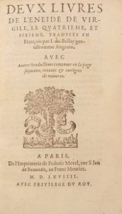 Deux livres de l'Enéide de Virgile, le quatrième, et sixième, traduits en François par I. Du Bellay, gentilhomme angevin. Avec autres traductions contenues en la page suyvante, reueuës & corrigées de nouveau
