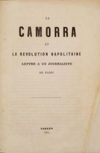 La Camorra et la révolution napolitaine. Lettre à un journaliste de Paris. Naples, s.n., 1864, in-8, 21 pp., broché.