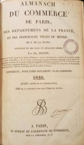 Paris, au Bureau de l'Almanach du Commerce, 1826, fort in-8, demi-basane ocre, dos lisse orné de filets dorés (reliure postérieure). Cachet humide de la collection Debuisson sur la page de titre