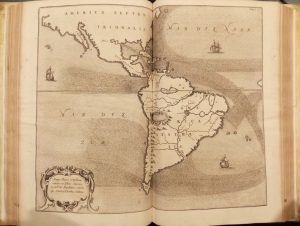 Amsterdam, Jan Jansson, 1678, 2 vol. in-folio, [10] ff. n. ch. (titre-frontispice gravé, titre, dédicace à Alexandre VII, préface, table), 366 pp., [3] ff. n. ch. d'index ; [5] ff. n. ch. (titre-frontispice, dédicace à Léopold Ier, préambule, table), 507-[9] pp., texte sur deux colonnes, avec de nombreuses figures dans le texte, et 26 planches et cartes hors-texte (15 planches doubles, 11 planches simples), dont 5 tableaux, vélin rigide, dos à nerfs ornés de filets à froid, double encadrement de double et simple filet à froid sur les plats, grand motif central, tranches mouchetées (reliure de l'époque).