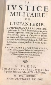 La Justice militaire de l'infanterie, comprenant les considérations que les Chefs doivent avoir sur toute sorte de iugemens