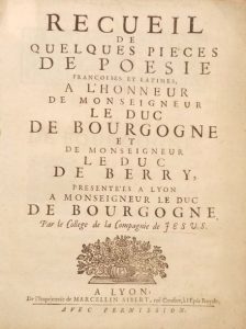 LYON - Recueil de quelques pièces de poésie Françoises et Latines, à l'honneur de Monseigneur le Duc de Bourgogne et de Monseigneur le Duc de Berry, présentées à Lyon à Monseigneur le Duc de Bourgogne, par le collège de la Compagnie de Jésus