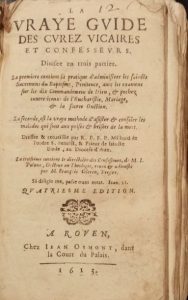 La Vraye guide des curez, vicaires et confesseurs. Divisée en trois parties. La première contient la pratique d'administrer les saincts sacremens du baptesme, pénitence, avec les examens sur les dix commandemens de Dieu, & péchez contre iceux : de l'Eucharistie, mariage, & la sacrée onction. - La seconde, est la vraye méthode d'assister & consoler les malades qui sont aux prises & brisées de la mort (...). La troisième contient le Directoire des confesseurs, de M. I. Polanc (...), reveu & adiousté par François Celerin. Quatriesme édition