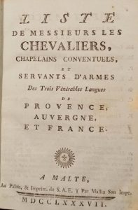 Liste de Messieurs les Chevaliers, chapelains conventuels et servants d'armes