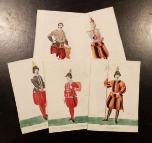 S.l. [Rome], s.d., in-12, 46 planches de costumes en couleurs, légendées en italien, en feuilles (en partie en accordéon), sous chemise cartonnée et gaufrée modeste, dos muet (reliure de l'époque)