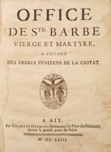 Office de Ste Barbe, vierge et martyre, à l'usage des Frères pénitens de La Ciotat