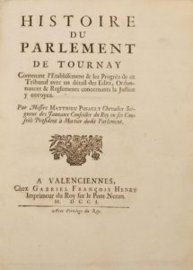 Histoire du parlement de Tournay, contenant l'établissement et les progrès de ce Tribunal avec un détail des Edits, Ordonnances et Réglemens concernants la justice y envoyez