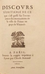 Discours véritable de ce qui s'est passé sur l'occurrence des mouvemens de la ville de Privas, au pays de Vivarois