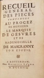 Recueil général des pièces contenues au procez de Monsieur le Marquis de Gesvres, & de Mademoiselle de Mascranni son épouse. Nouvelle édition, augmentée de diverses pièces, & mises dans leur ordre
