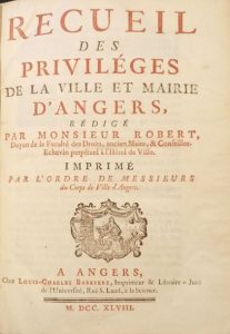 Recueil des Privilèges de la ville et mairie d'Angers. Imprimé par l'ordre de Messieurs du Corps de Ville d'Angers