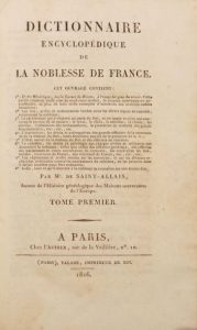 Dictionnaire encyclopédique de la noblesse de France (...) [Avec :] Dictionnaire véridique des origines des maisons nobles ou anoblies du Royaume de France, contenant aussi les vrais ducs, marquis, comtes, vicomtes et barons. Par M. Laîné, successeur de M. de Saint-Allais