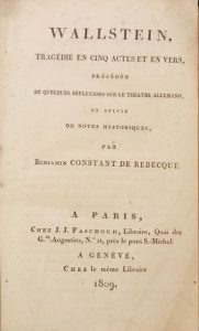 Wallstein, tragédie en cinq actes et en vers, précédée de quelques réflexions sur le théâtre allemand, et suivie de notes historiques, par Benjamin Constant de Rebecque
