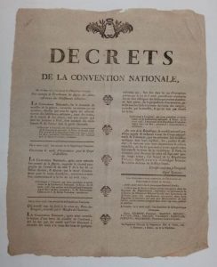 10. [AFFICHE] - DÉCRETS de la Convention Nationale. Rennes, Robiquet, 1793, 44 x 35 cm. Publicité de trois décrets :