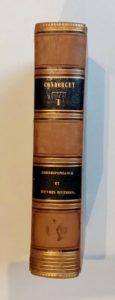 CONDORCET (Jean-Antoine-Nicolas Caritat de). OEuvres publiées par A. Condorcet O'Connor et F. Arago. Paris, Firmin Didot frères, 1847-1849, 12 forts vol. grands in-8. Demi-basane blonde, dos lisses ornés de filets dorés, tranches mouchetées (Heritier). Traces d'étiquette au dos. Bon exemplaire.