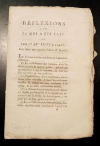 96. CONDORCET (Jean-Antoine-Nicolas Caritat de). Réflexions sur ce qui a été fait et sur ce qui reste à faire. Lues dans une société d'Amis de la paix. S.l., (1789), in-8, 33 pp., débroché. Manque probablement la page de titre.