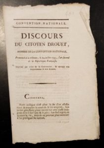 132. DROUET (Jean-Baptiste). Discours prononcé à la tribune, le 14 juillet 1793, an II. Paris, Imprimerie Nationale, s.d., in-8, 3 pp.