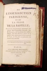 DUSAULX (Jean). De l'Insurrection parisienne et de la prise de la Bastille. Discours historique, prononcé par extrait dans l'Assemblée nationale. Paris, A la librairie Historique, 1821, in-12, 314 pp., demi-chagrin bordeaux à coins, dos lisse (rel. moderne).