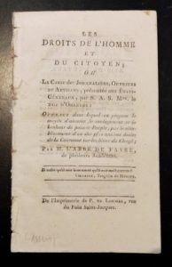 160. FAVRE. Les Droits de l'Homme et du Citoyen, ou La cause des journaliers, ouvriers et artisans, présenté aux Etats-Généraux, par S.A.R. Mgr le duc d'Orléans. Ouvrage dans lequel on propose le moyen d'assurer le soulagement et le bonheur du pauvre peuple, par le rétablissement d'un des plus anciens droits de la couronne sur les biens du clergé. (Paris), De l'Imprimerie de P. de Lormel, s.d., in-8, 61 pp., dérelié.