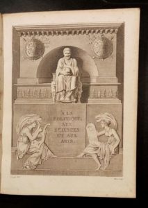 GIRARDIN. Révolution française ou Analyse complette et impartiale du Moniteur. À Paris, Chez Girardin, presses d'Étienne Charles, 1801, 3 vol. in-4, [8]-877 pp., 794 pp. et 1049 pp., frontispice et vignettes gravées, veau blond raciné, dos lisse orné, guirlande dorée encadrant les plats, roulette sur les coupes, tranches jaunes mouchetées (rel. de l'époque). Mors fragiles, fendillés, coiffes abîmées, arasées au tome 2, coins émoussés, qqs épidermures sur les plats.