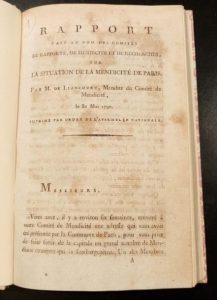 202. LA ROCHEFOUCAULD-LIANCOURT (François-Alexandre-Frédéric de). Recueil de quatre rapports du Comité de Mendicité. Paris, Imprimerie Nationale, 1790, in-8, bradel papier marbré, pièce de titre (rel. moderne). Qqs rousseurs.