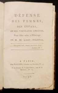 207. [LALLY-TOLLENDAL (Trophime-Gérard de)]. DÉFENSE des Femmes, des Enfans, et des vieillards émigrés, pour faire suite à l'ouvrage de M. de Lally-Tolendal. À Paris, chez Poignée, 1797, in-8, 80 pp., demi-basane violine, dos lisse orné, tranches jaunes (reliure du XIXe).