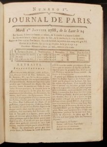 Importante collection, presque complète pour les années pré-révolutionnaires et révolutionnaires 1788-1792 (en-dehors de numéros isolés pour les années 1789-9). S'il paraît manquer surtout la série continue des numéros 226-274, correspondant aux événements du mois d'août et à la chute de la Monarchie, c'est que le journal, suspect de royalisme, ne put paraître du 13 août au 1er octobre,