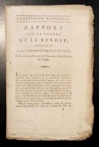 348. RICHARD et CHOUDIEU. Rapport sur la guerre de la Vendée, présenté à la Convention Nationale. Paris, De l'Impr. Nationale, s.d., in-8, 78 pp., 1 f. dépl., en cahiers.