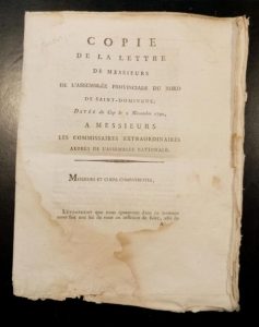 Très importante lettre adressée par les Colons de Saint-Domingue sur le début de l'insurrection de l'île.
