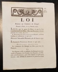 [SÉNÉGAL] - Loi relative au commerce du Sénégal. Alençon, Imp. de Malassis Le Jeune, 1791, in-4, 3 pp.
