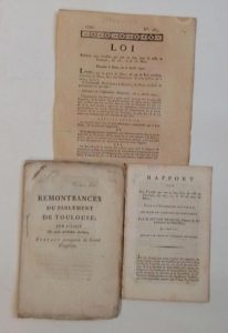 Textes de Barère, Boissy d’Anglas, Burke, Buonarotti, Calonne, Condorcet, Desmoulins, Dupont de Nemours, Louis XVI, Mirabeau, Mounier, Robespierre, Saint-Just… États-Généraux, Économie, Finances, Colonies, Emigration, Constitutions, Pamphlets… Collection d’autographes de conventionnels. Iconographie : Bonneville, Grasset Saint-Sauveur, Prieur Manuscrit dont MÉMOIRES INÉDITS de Joseph-Marie PORTALIS - Journaux révolutionnaires dont les deux rarissimes journaux de ROBESPIERRE. Collection des Drapeaux. Reliures révolutionnaires. Affiches Plus de 5000 BROCHURES RÉVOLUTIONNAIRES en recueils ou en fascicules.