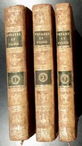 403. YOUNG (Arthur). Voyages en france pendant les années 1787-88-89 et 90 entrepris plus particulièrement pour s'assurer de l'état de l'agriculture, des richesses, des ressources et de la prospérité de cette Nation. Trad. de l'anglais par F. S., avec des notes et observations par M. de Casaux. Seconde édition. Paris, Buisson, 1794-an II, 3 vol. in-8, (5)-24, 8 ff. n. ch., 492 pp., 2 ff. n. ch., (1)-498 pp. et 2 ff. n. ch., (1)-416 pp., 2 cartes repliées, basane fauve, dos lisse orné, tranches marbrées (rel. de l'époque). Petites usures aux coiffes.