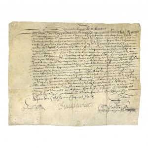 ENSEMBLE COMPOSÉ DE CINQ PIÈCES MANUSCRITES OU IMPRIMÉES SUR PEAU DE VÉLIN XVIIè siècle.