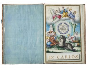 Pièce illustrée d’une page de titre emblématique aquarellée aux armes de Charles IV, roi d’Espagne (1748-1819) et de six petites lettrines dorées et ornées de vignettes également aquarellées ; titres dorés.